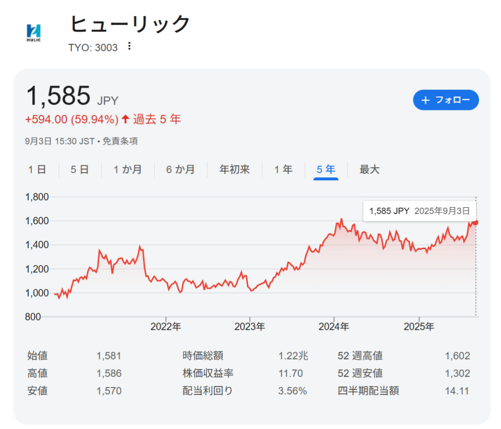 ヒューリックはお気に入りの投資先です。