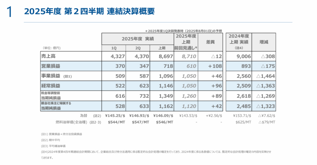 商船三井【9104】2026年3月期2Q決算(4-9月)全体