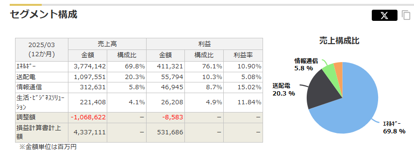 また興味深い点として電力以外にも事業として情報通信や生活・ビジネスソリューションなど他の事業も中長期的に成長させていこうとしている点です。